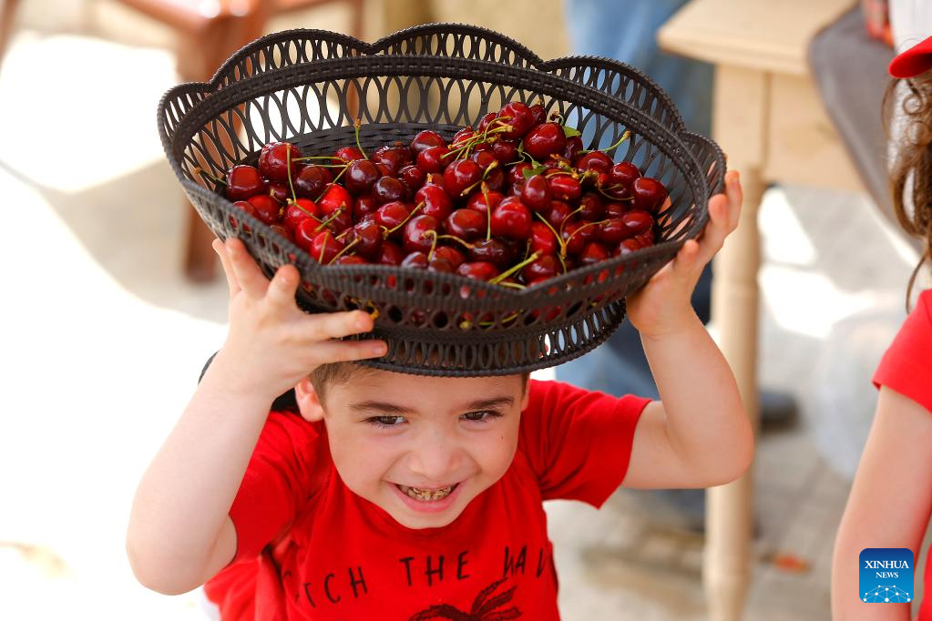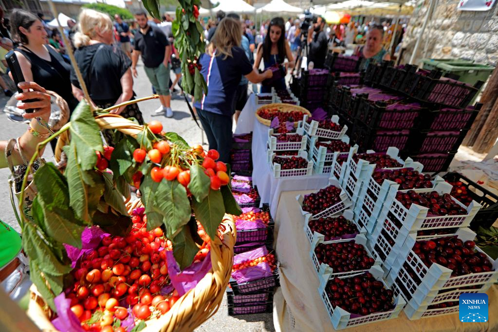 People visit the Hammana Cherry Festival in the village of Hammana, Mount Lebanon Governorate, Lebanon, on June 12, 2022. (Xinhua/Bilal Jawich)