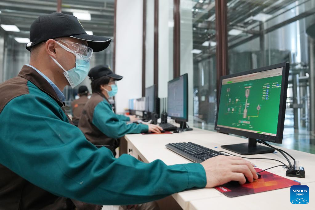 Staff members work at a beer company at Suifenhe Area of China (Heilongjiang) Pilot Free Trade Zone, June 8, 2022. (Xinhua/Wang Jianwei)