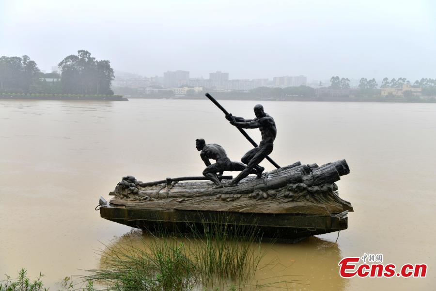 Aerial photo taken on June 13, 2022 shows the Minjiang River in Fuzhou, Fujian Province. Water level of the Fuzhou section of the Minjiang River has risen due to continuous rainfall and a level-III emergency response for flood control was initiated on Sunday. (Photo: China News Service/Zhang Bin)