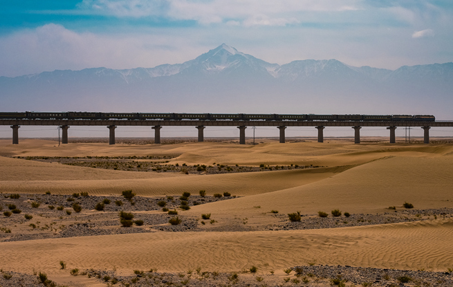 The operation of the railway marks the connection of the world’s first railway loop line surrounding a desert with a total length of 2,712 kilometers.