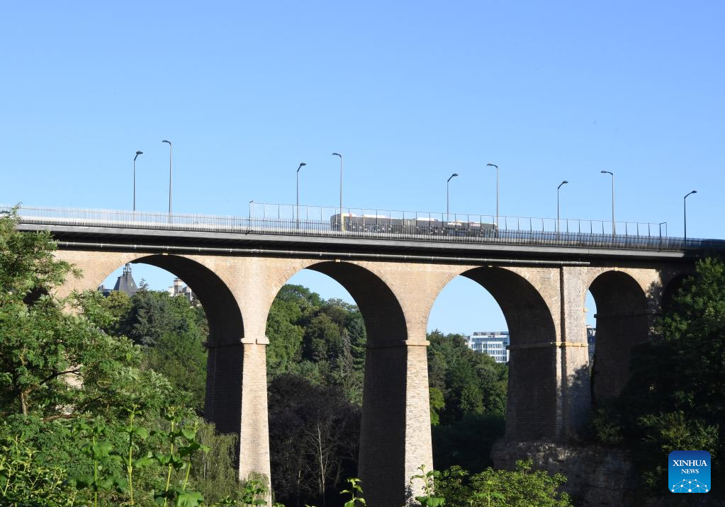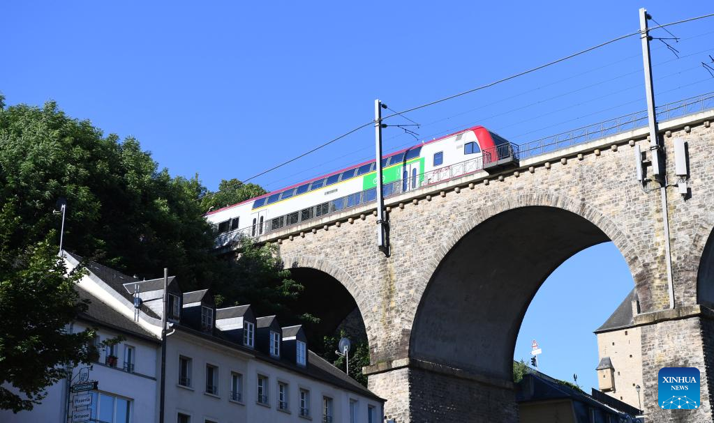 A train runs on a bridge in Luxembourg City, Luxembourg, June 14, 2022. (Xinhua/Ren Pengfei)