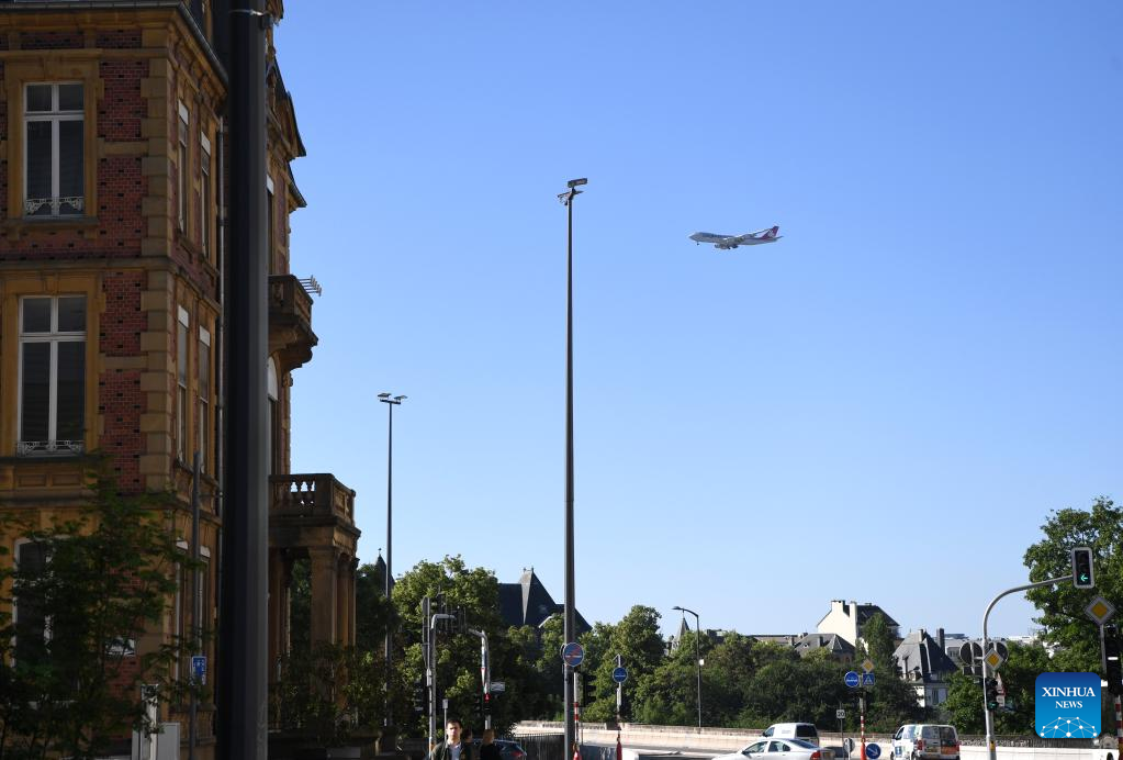 A plane flies over Luxembourg City, Luxembourg, June 14, 2022. (Xinhua/Ren Pengfei)