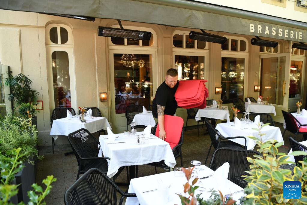 A waiter arranges a seat at a restaurant in Luxembourg City, Luxembourg, June 14, 2022. (Xinhua/Ren Pengfei)