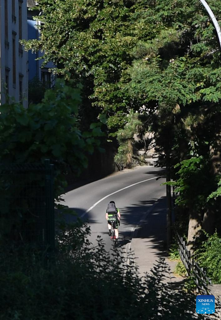 A man rides a bicycle on a road in Luxembourg City, Luxembourg, June 14, 2022. (Xinhua/Ren Pengfei)