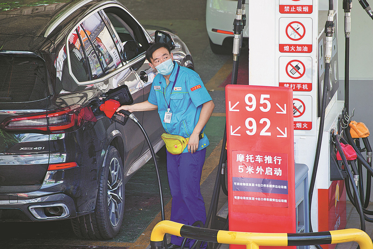 An employee fills up a car at a gas station in Nanjing, Jiangsu province. SU YANG/FOR CHINA DAILY
