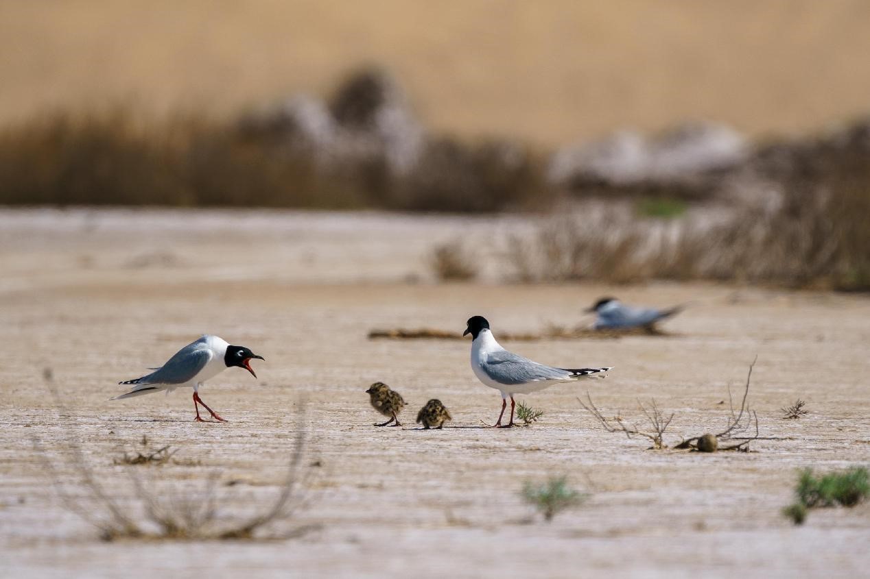 Black-headed gulls lead their young to feed, May 27, 2022. (People's Daily Online/Zhao Yingli)