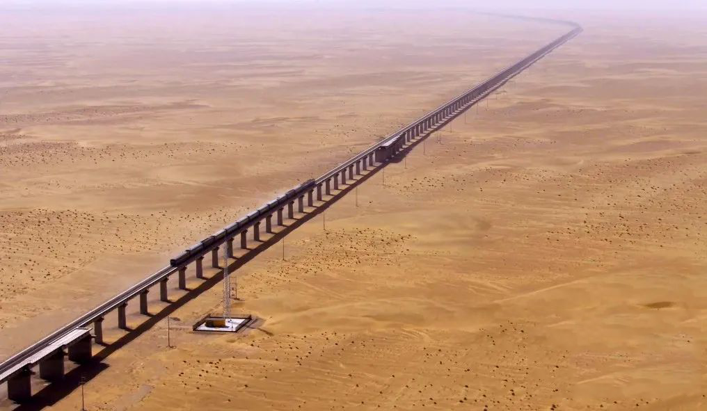 In some sandy areas where railway tracks are prone to be buried in sand because of sand dune migration, five viaducts with a total length of 49.7 km have been built to allow sandstorms to pass under the bridges, significantly reducing the impact of sandstorms on the railway line.