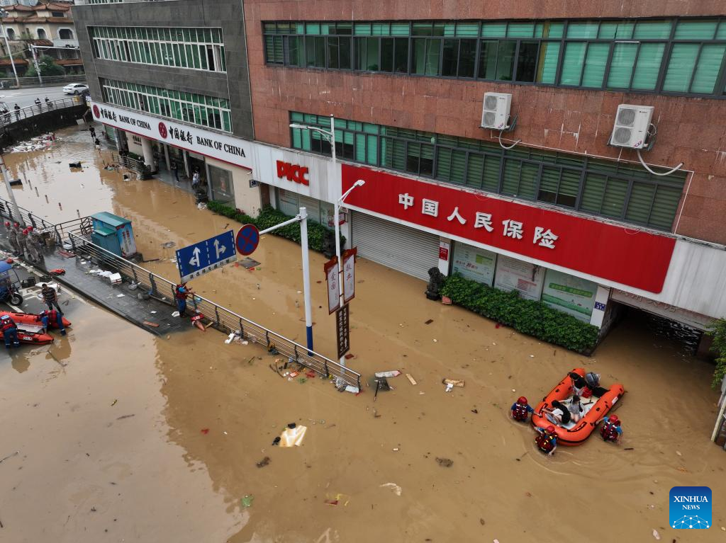 Heavy rainfalls cause floods, waterlogging in Jian'ou City, SE China