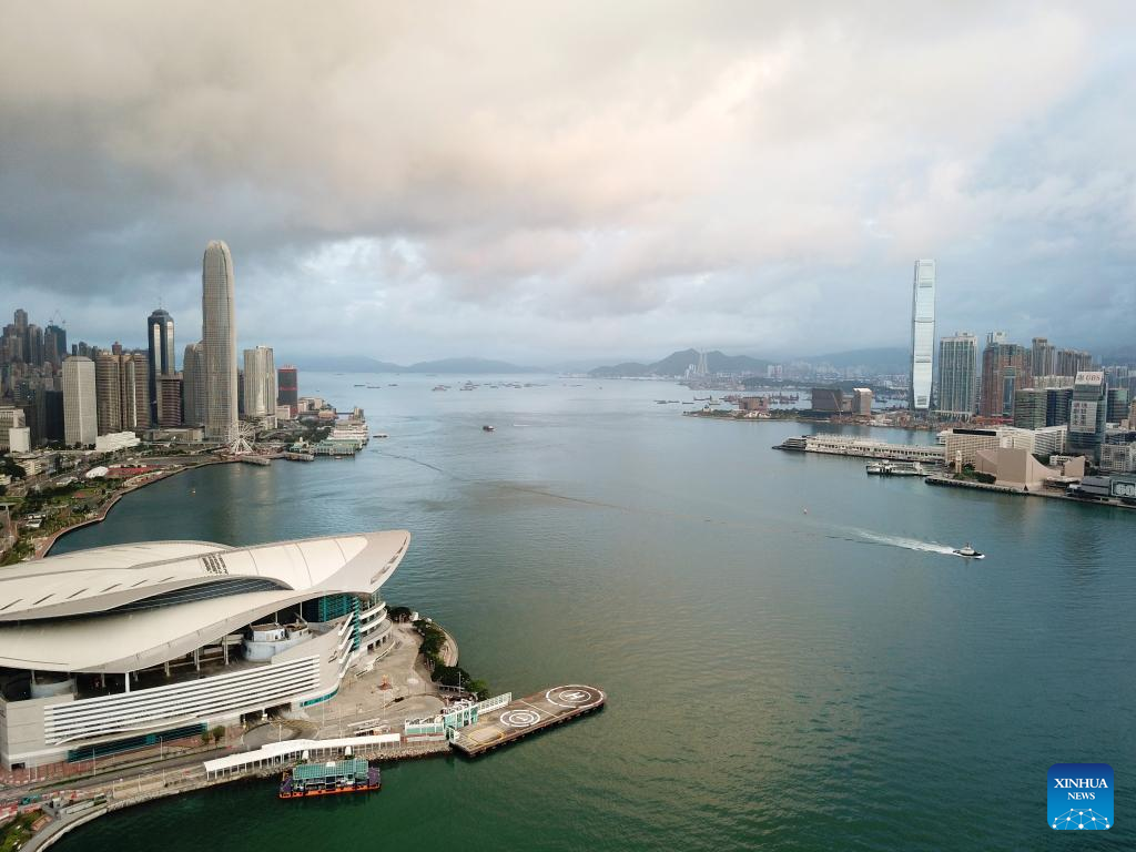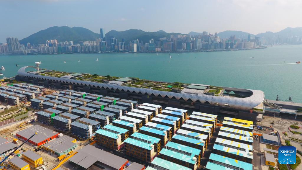 Aerial photo taken on May 20, 2022 shows a view of the Kai Tak Cruise Terminal in south China's Hong Kong. This year marks the 25th anniversary of Hong Kong's return to the motherland. (Xinhua/Lui Siu Wai)