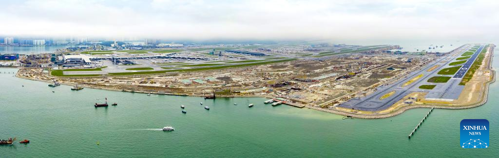 Aerial photo taken on May 14, 2022 shows the third runway at the Hong Kong International Airport in south China's Hong Kong. This year marks the 25th anniversary of Hong Kong's return to the motherland. (Hong Kong International Airport/Handout via Xinhua)