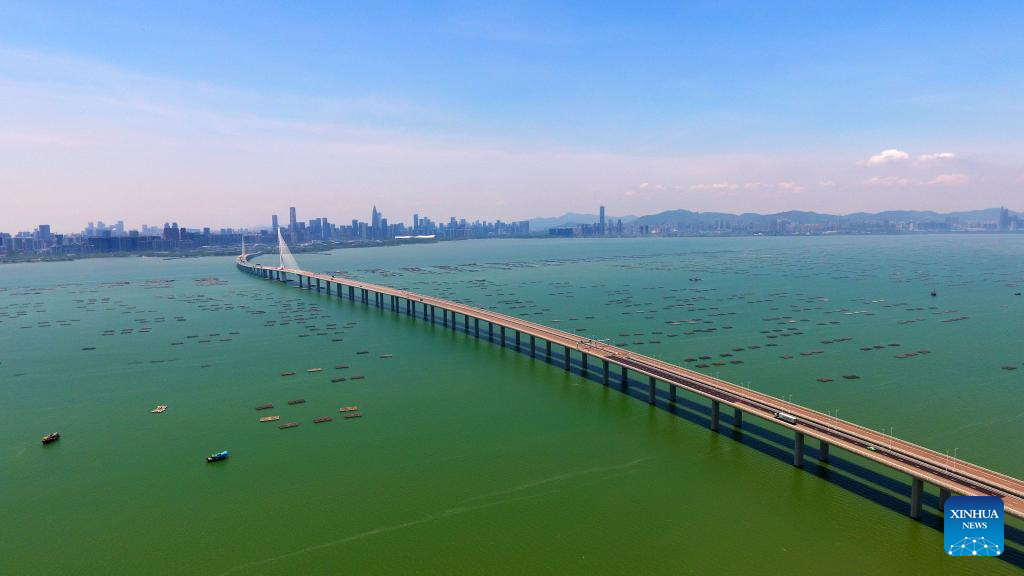 Aerial photo taken on May 20, 2022 shows the Shenzhen Bay Bridge linking south China's Shenzhen and Hong Kong. This year marks the 25th anniversary of Hong Kong's return to the motherland. (Xinhua/Xu Langxuan)