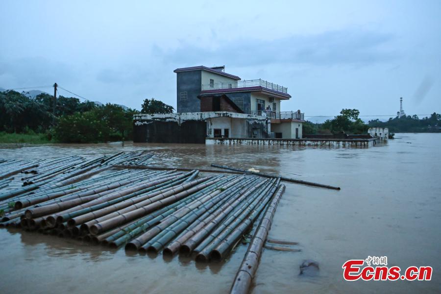 Buildings are seen partially submerged in floodwaters following heavy rainfall in Shaoguan, south China's Guangdong Province, June 21, 2022. (Photo: China News Service/Chen Jimin)