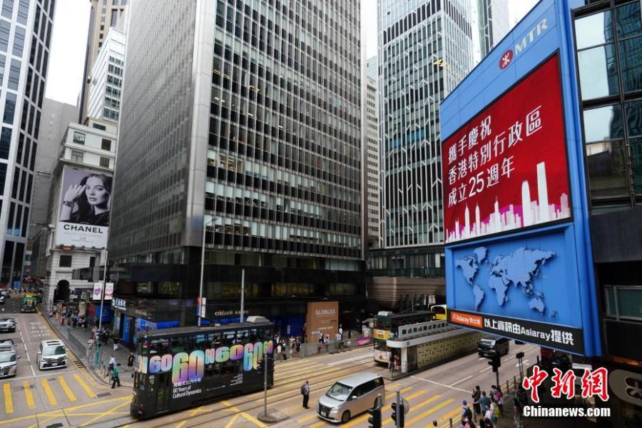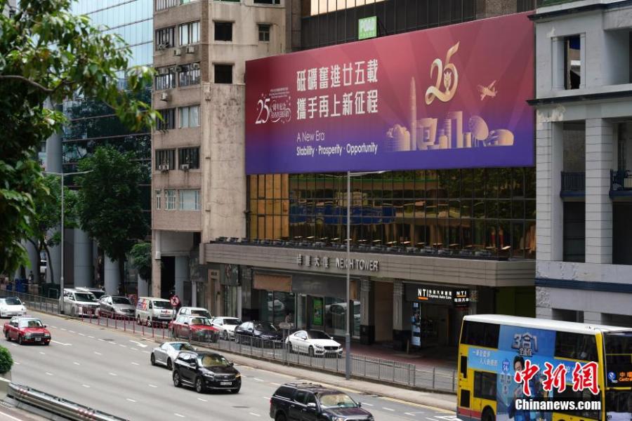 Posters celebrating the 25th anniversary of Hong Kong's return to the motherland are seen in the Hong Kong Special Administrative Region, June, 21, 2022. (Photo: China News Service/Zhang Wei)