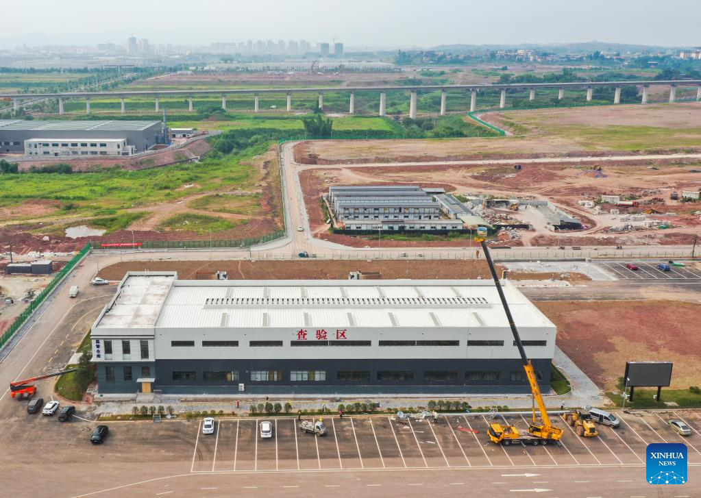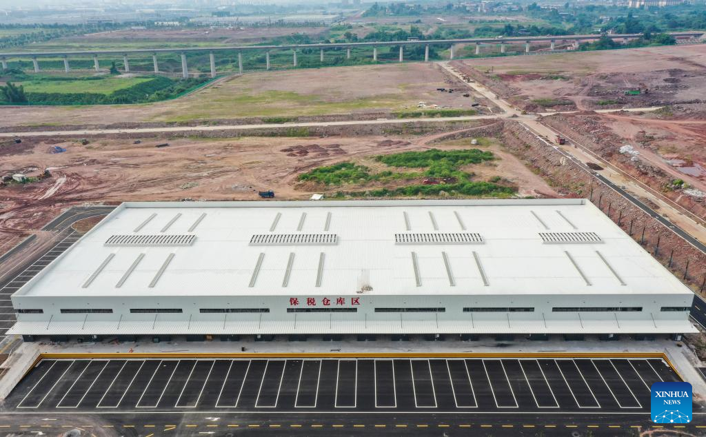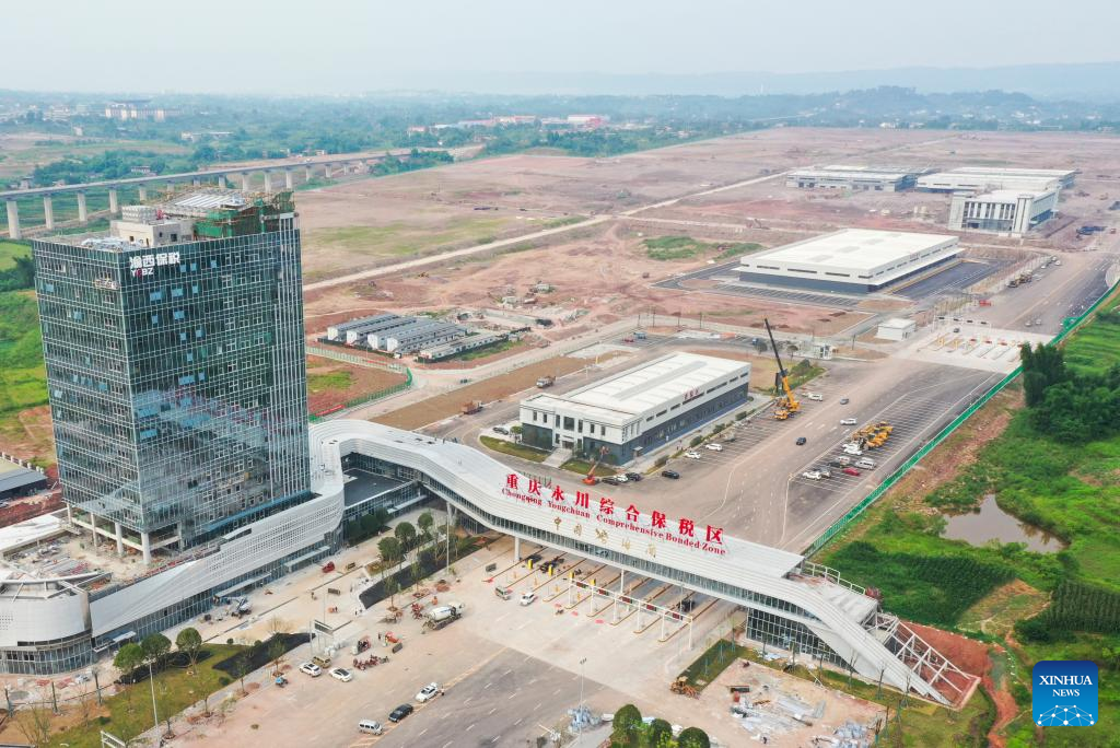 The comprehensive bonded zone in Yongchuan was approved to be set up by the State Council on July 2021, becoming the 6th zone of its kind in Chongqing. The project has an area of 1.11 square kilometers and covers multiple bonded trade services. (Xinhua/Wang Quanchao)