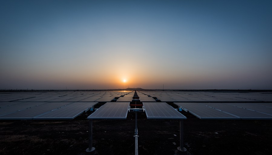 Photo taken on April 10, 2017 shows a solar power plant near Hyderabad, capital of India's southern state of Telangana. The plant was constructed with the assistance of Chinese enterprises. (Xinhua/Bi Xiaoyang)