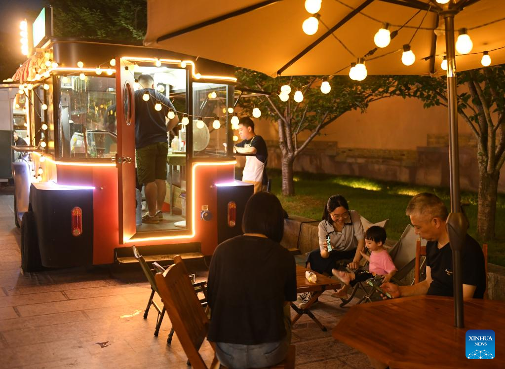 People rest beside a food truck in the ancient city of Taizhou, Linhai, east China's Zhejiang Province, June 23, 2022.