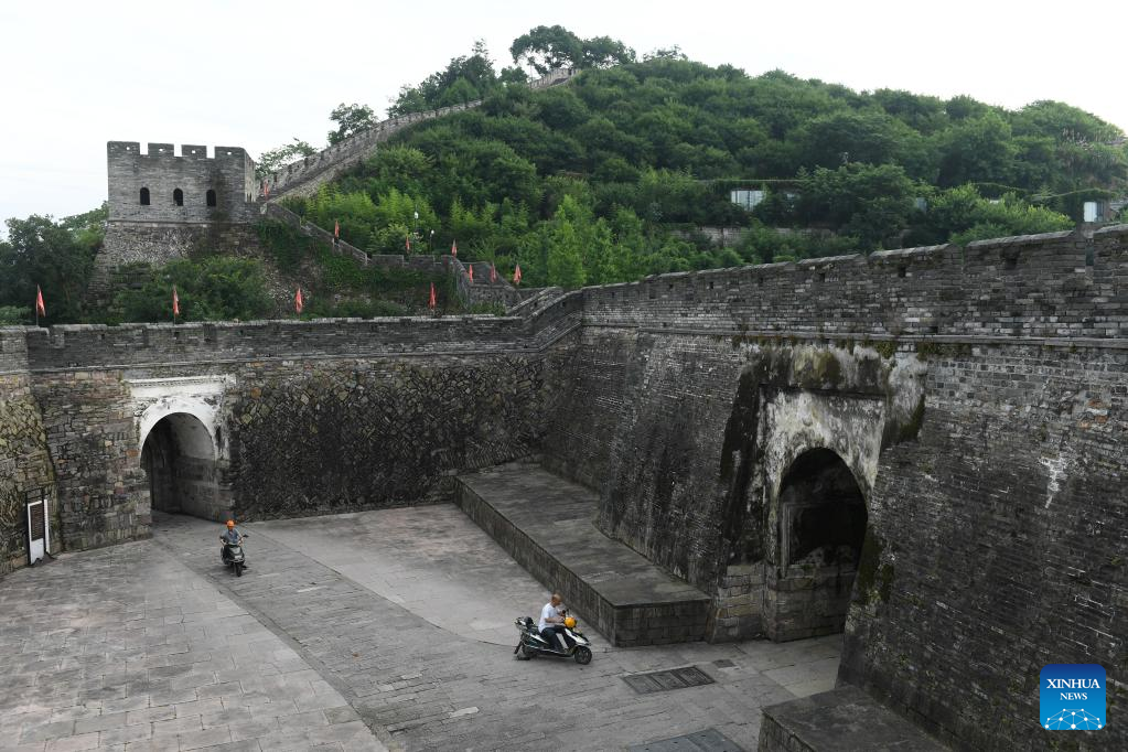 People pass through the gate of the ancient city wall of Taizhou, Linhai, east China's Zhejiang Province, June 24, 2022.