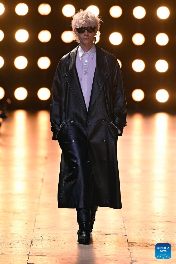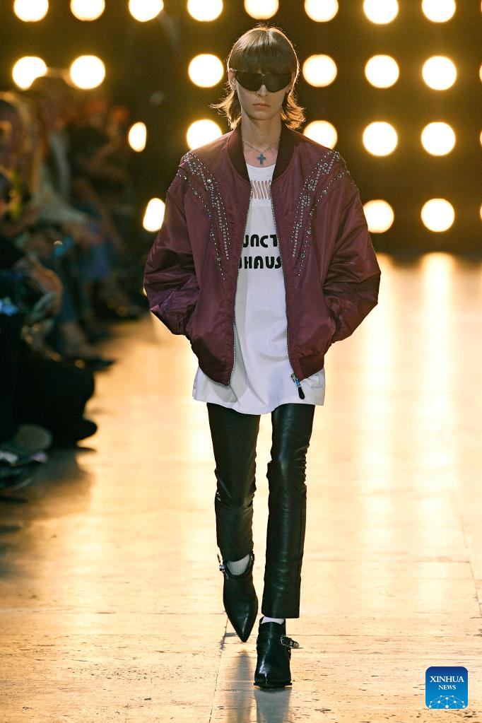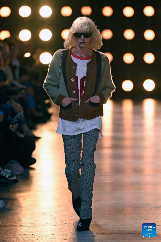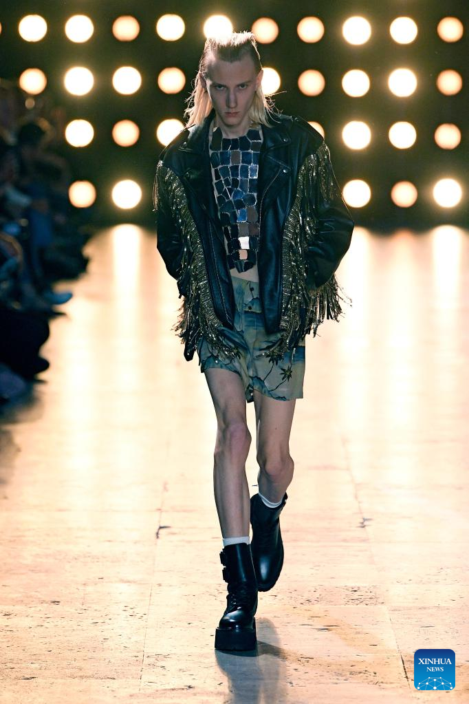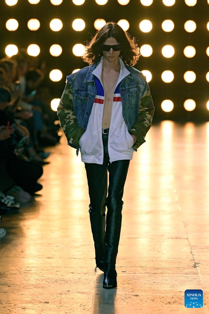 A model presents a creation from the Spring/Summer 2023 collection of Celine during the men's fashion week in Paris, France, on June 26, 2022. (Photo by Piero Biasion/Xinhua)