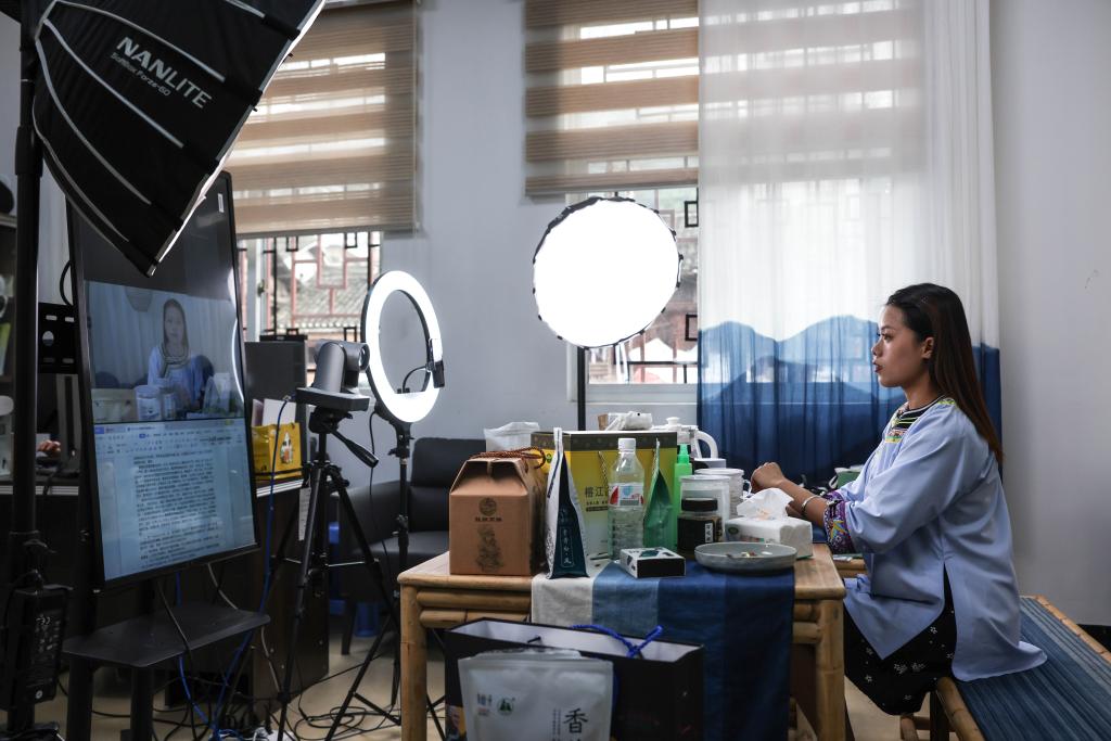 It is expected that more than 2,000 livestreaming promotion teams will be fostered in Rongjiang by 2023, which will create jobs for more than 10,000 people. (Photo by Wang Bingzhen/Xinhua)
