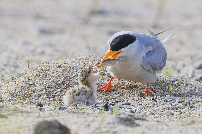 A river tern feed its nestling at the Yingjiang National Wetland Park in southwest China's Yunnan Province. (Photo/He Haiyan)
