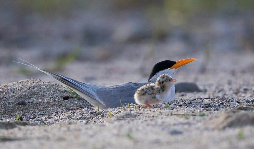 A river terns feeds its nestling at the Yingjiang National Wetland Park in southwest China's Yunnan Province. (Photo/Sha Yongsheng)