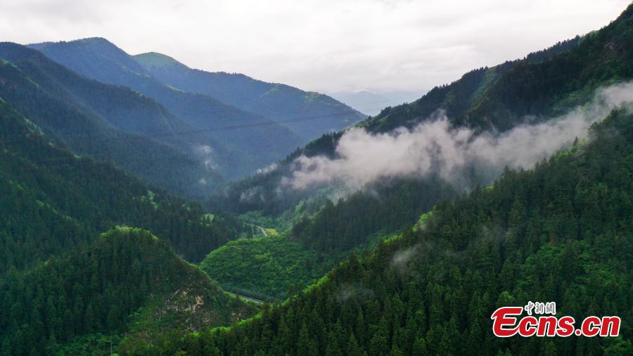 A sea of clouds hover over Xinglong Mountain after summer rain, forming a magnificent landscape in Lanzhou, northwest China's Gansu Province, June 28, 2022. (Photo: China News Service/Zhao Xiangjun)