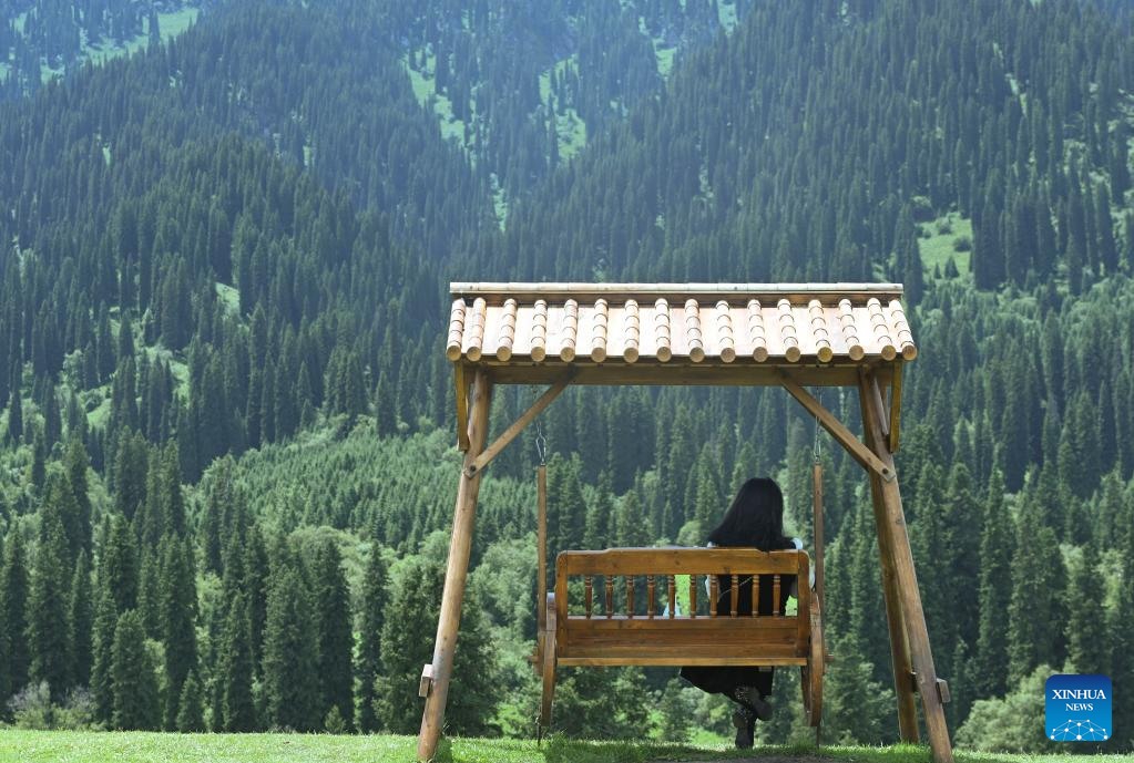 Tourists visit the Narat scenic spot in Xinyuan County, northwest China's Xinjiang Uygur Autonomous Region, June 28, 2022. (Xinhua/Hao Jianwei)