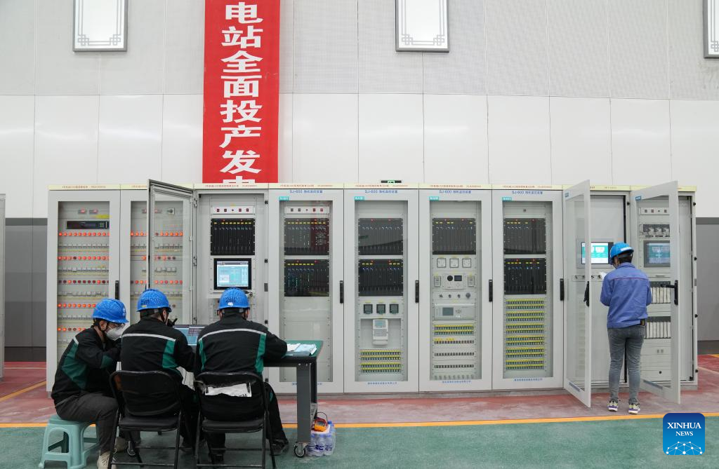 Staff members work at the Huanggou pumped-storage hydropower station in Hailin City of Mudanjiang, northeast China's Heilongjiang Province, June 29, 2022. Huanggou power station, the pumped-storage hydropower station with the highest latitude in China, was put into full operation on Wednesday. The power station has a total installed capacity of 1.2 million kW. (Xinhua/Wang Jianwei)