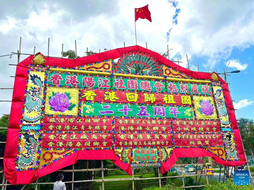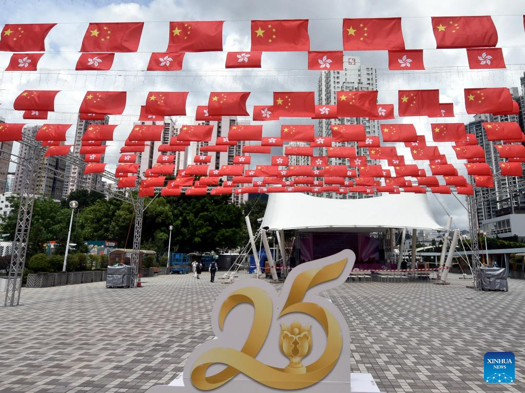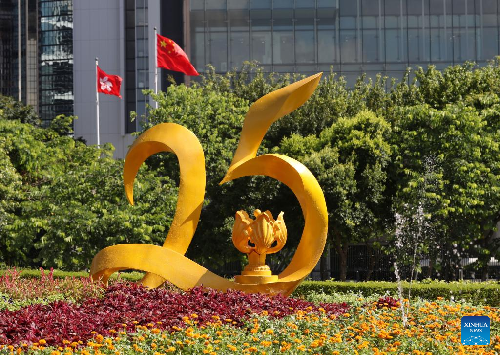 Photo taken on June 28, 2022 shows an installation marking the 25th anniversary of Hong Kong's return to the motherland in Hong Kong, south China. July 1 this year marks the 25th anniversary of Hong Kong's return to the motherland. (Xinhua/Li Gang)