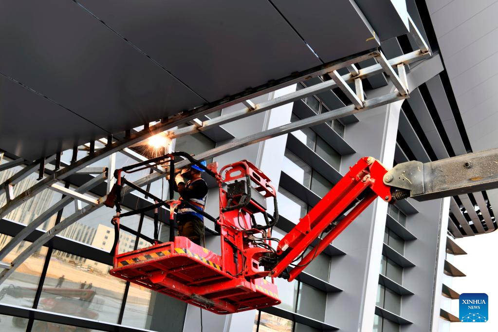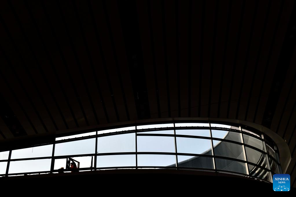A worker is seen at construction site of Da'an Airport terminal in Jining, east China's Shandong Province, July 1, 2022. (Xinhua/Guo Xulei)