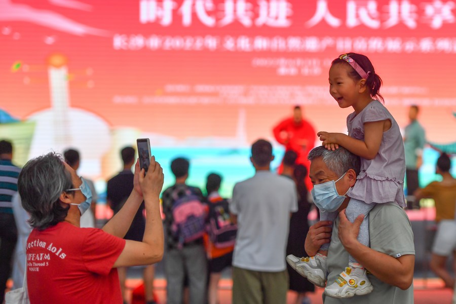 Visitors pose for photos at a summer cultural and tourism market in Changsha, central China's Hunan Province, June 10, 2022. (Xinhua/Chen Zeguo)