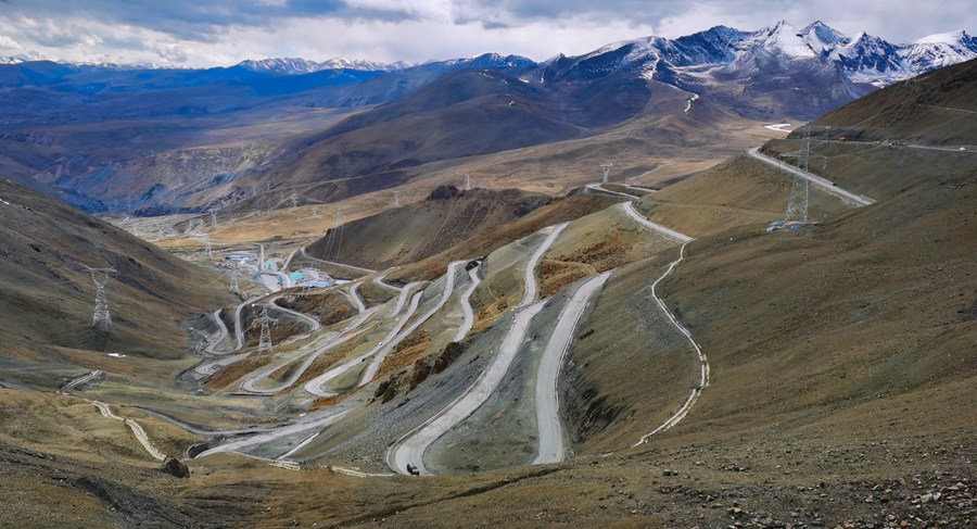 Photo taken on May 14, 2021 with a mobile phone shows the view of a road to Gyirong County, Xigaze of southwest China's Tibet Autonomous Region. (Xinhua/Shen Hongbing)