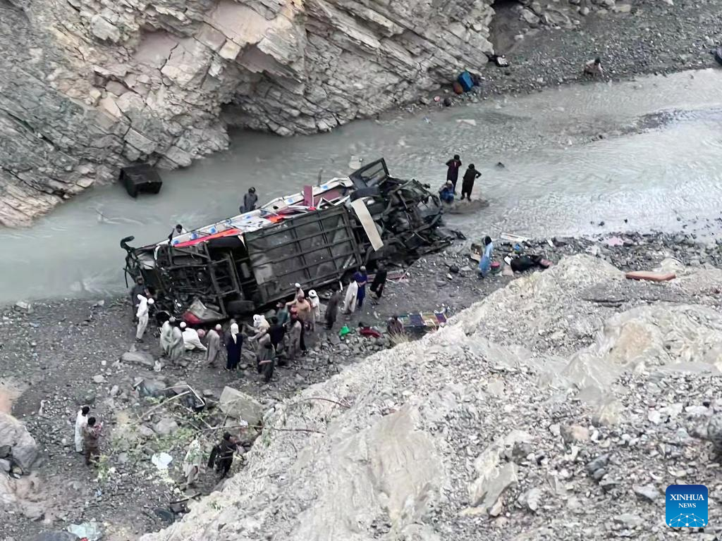 ISLAMABAD, July 3 (Xinhua) -- At least 19 passengers were killed and 12 others injured when a passenger bus fell into a ravine on Sunday near Sherani district of Pakistan's southwestern Balochistan province, local media reported.