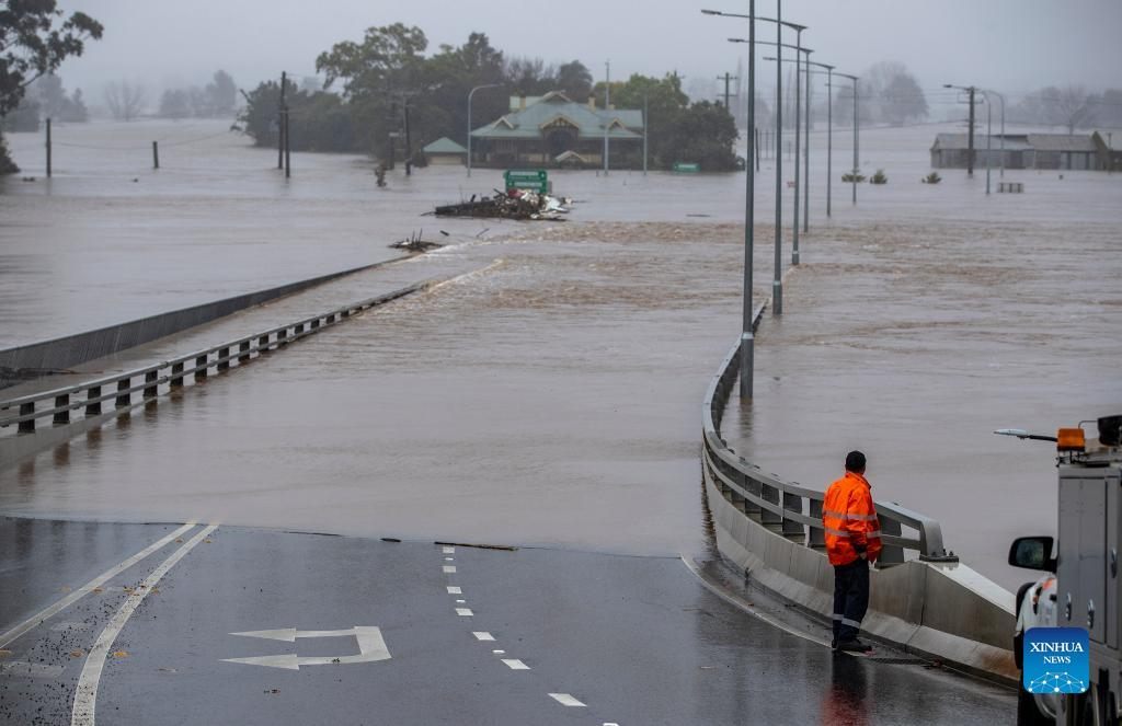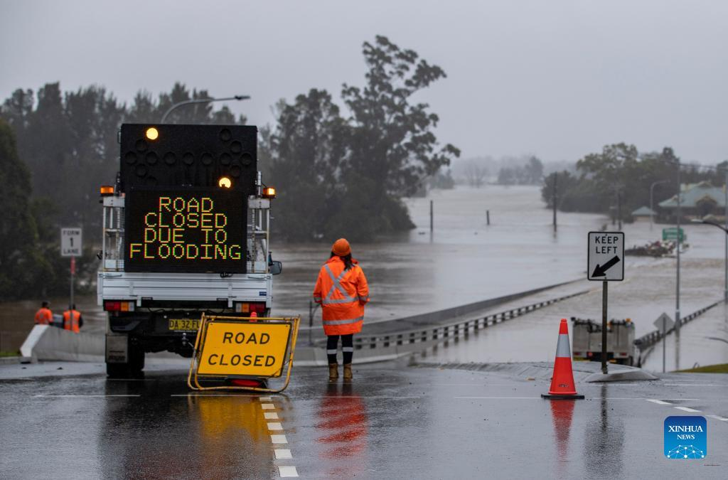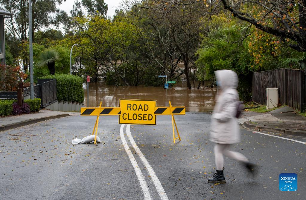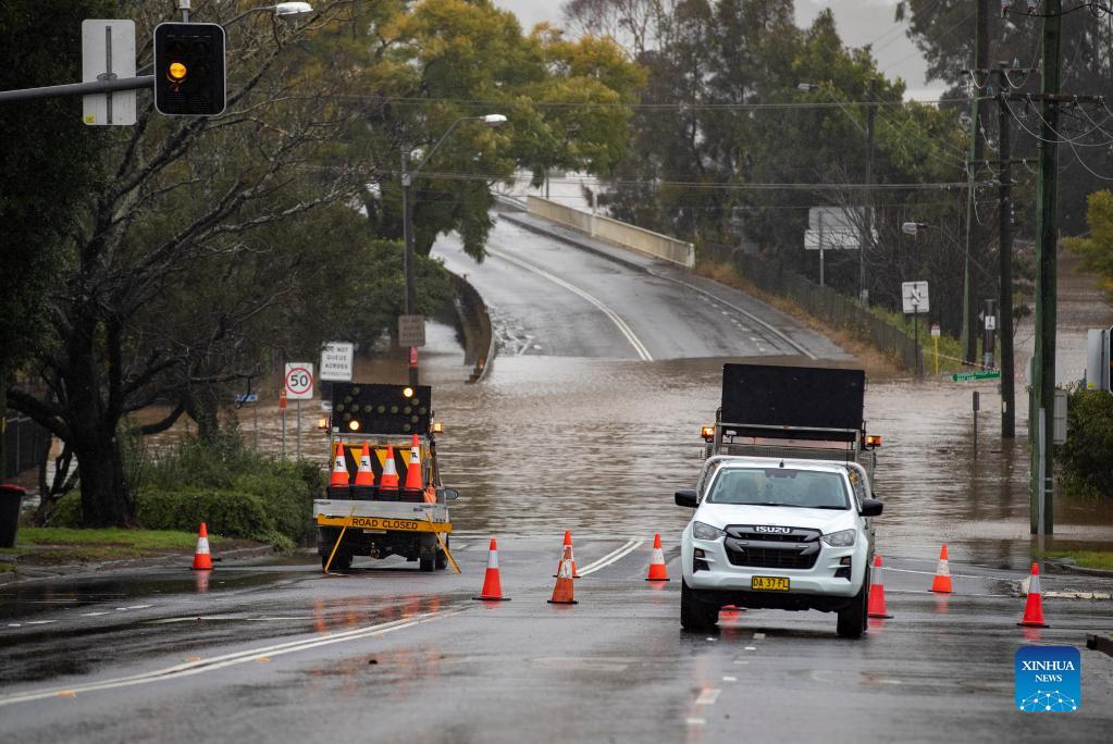 Photo taken on July 4, 2022 shows a flooded road in Windsor, New South Wales, Australia. Heavy rainfall across Australia's southeast coast since Saturday last week has once again inundated Sydney and large parts of southeast New South Wales (NSW) with flash flooding and severe weather. (Xinhua/Bai Xuefei)