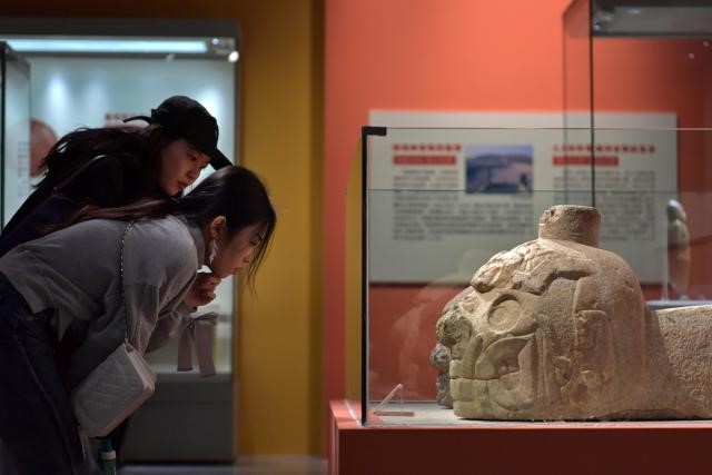 Visitors view an exhibit at Shanxi Museum in Taiyuan, capital of north China’s Shanxi Province, Oct. 10, 2019. A total of 157 exhibits from 11 Peruvian museums are on display at the exhibition featuring the Andean culture. ((Photo/Cao Yang)