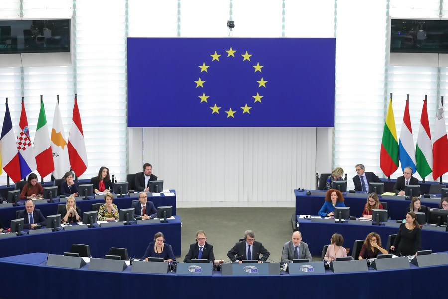 The European Parliament holds a plenary session at its headquarters in Strasbourg, France, Nov. 27, 2019. (Xinhua/Zhang Cheng)