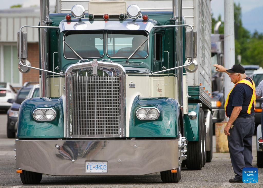 A vintage truck is parked at a spot for display during the National Truck Show in Surrey, British Columbia, Canada, on July 8, 2022. (Photo by Liang Sen/Xinhua)