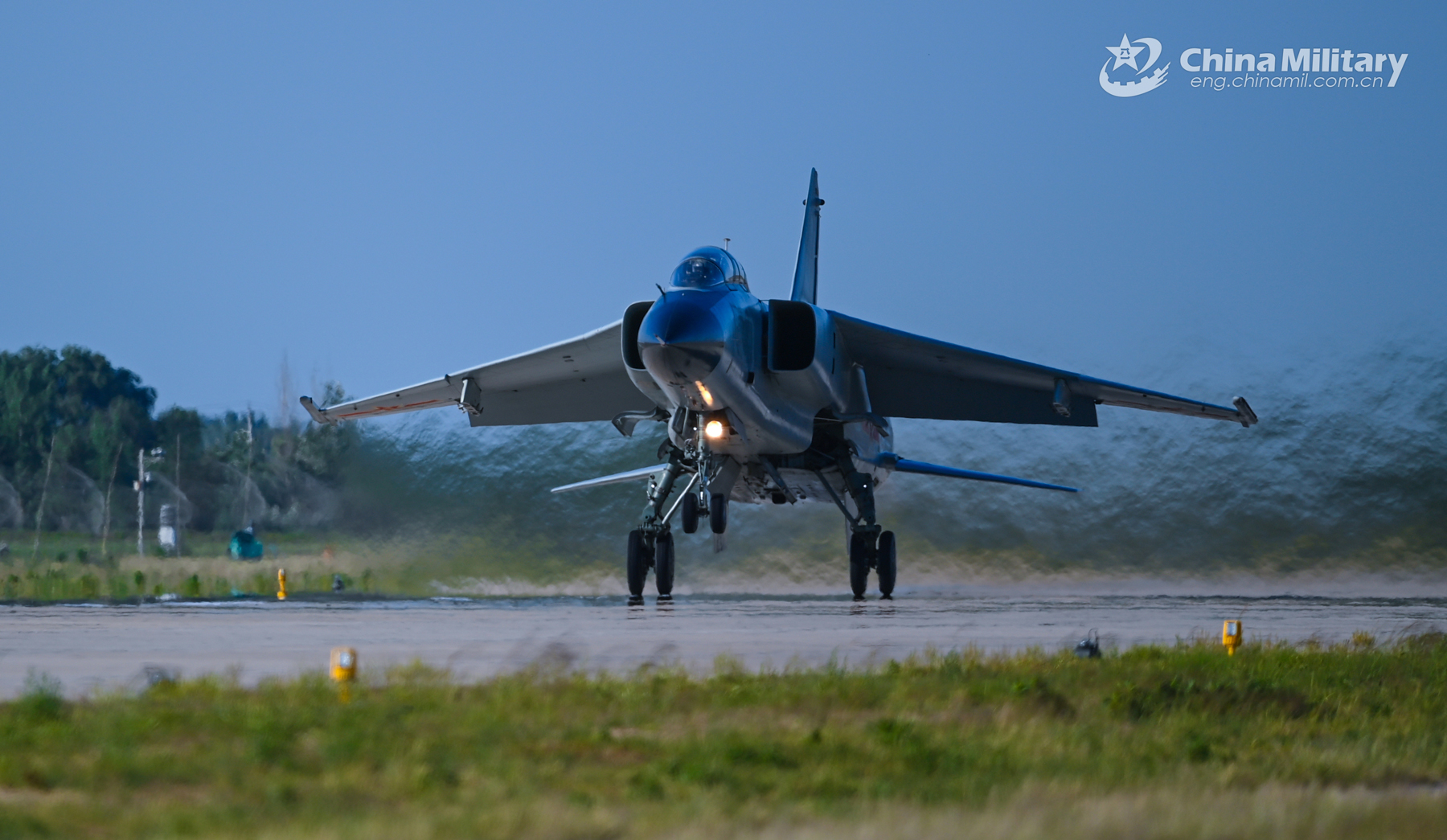 A fighter jet attached to a training base of the PLA Air Force takes off from the runway during a flight training exercise on May 26, 2022. (eng.chinamil.com.cn/Photo by Wang Guodong)
