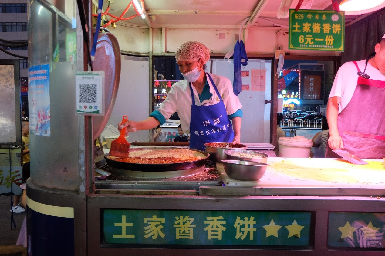 A vendor sells local snacks at a night market in Yinchuan, northwest China's Ningxia Hui Autonomous Region on July 8, 2022. (People's Daily Online/Zhong Wenxing)
