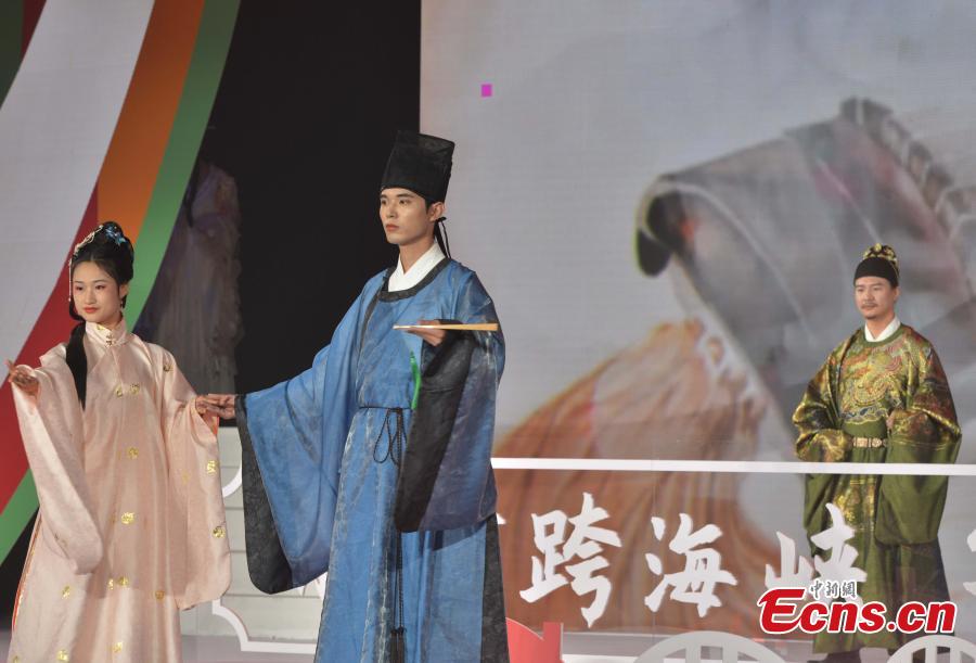 Models show off traditional Chinese attire at the 2022 Cross-Straits Traditional Chinese Clothing Cultural Festival in Xiamen, Fujian Province, July 12, 2022. (Photo: China News Service/Zhang Bin)