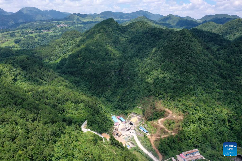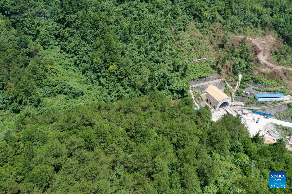 Aerial photo taken on July 13, 2022 shows the Qingmiaozhai tunnel of the Guiyang-Nanning high-speed railway in southwest China's Guizhou Province. The Qingmiaozhai tunnel was through on Wednesday, which was the lastly drilled through one among all 63 tunnels on the Guiyang-Nanning high-speed railway designed with a maximum speed of 350 km per hour. (Xinhua/Liu Xu)