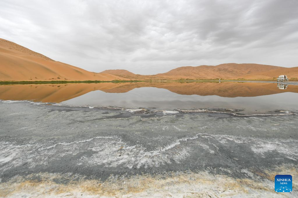 Photo taken on July 13, 2022 shows a view of the Badain Jaran Desert in north China's Inner Mongolia Autonomous Region. (Xinhua/Bei He)
