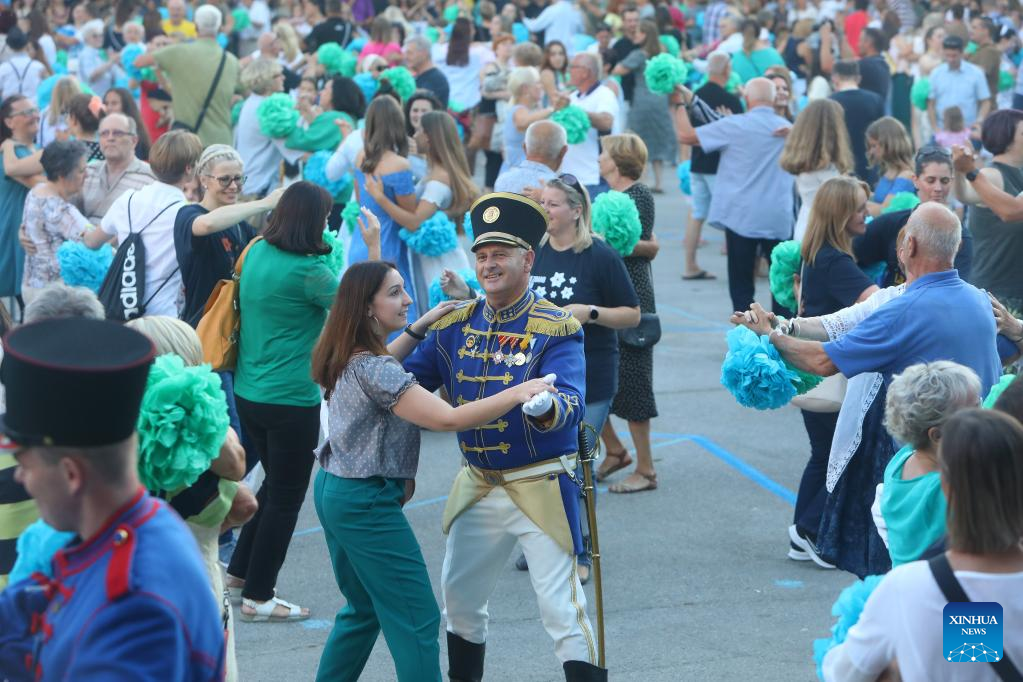 People dance during a birthday ball in Karlovac, Croatia, on July 13, 2022. A total of 443 couples danced during the birthday ball in central Karlovac to celebrate the 443rd anniversary of its creation on Wednesday. (Kristina Stedul Fabac/PIXSELL via Xinhua)