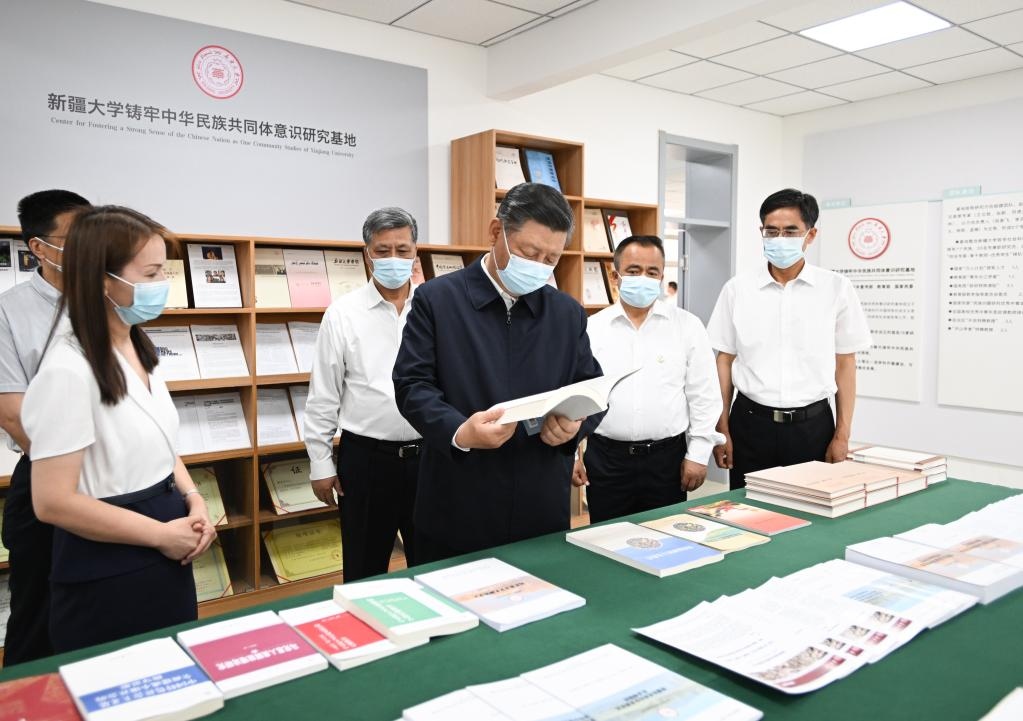 Chinese President Xi Jinping, also general secretary of the Communist Party of China Central Committee and chairman of the Central Military Commission, visits Xinjiang University in the city of Urumqi, capital of northwest China's Xinjiang Uygur Autonomous Region, July 12, 2022. (Xinhua/Li Xueren)