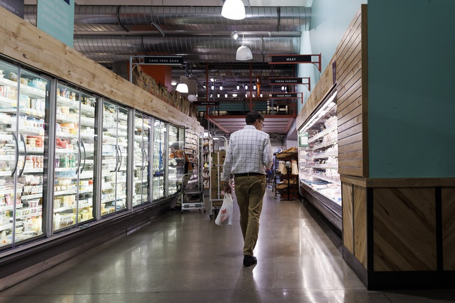 A customer shops at a supermarket in Washington, D.C., the United States, on July 13, 2022. (Photo by Ting Shen/Xinhua)