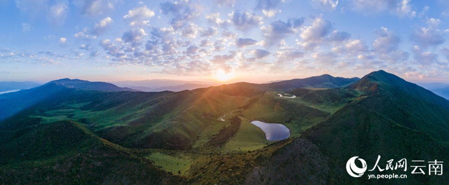 Photo shows the beautiful scenery of a sunrise at Niaodiaoshan Mountain in the Dali Bai Autonomous Prefecture, southwest China’s Yunnan Province. (Photo/Luo Xincai)
