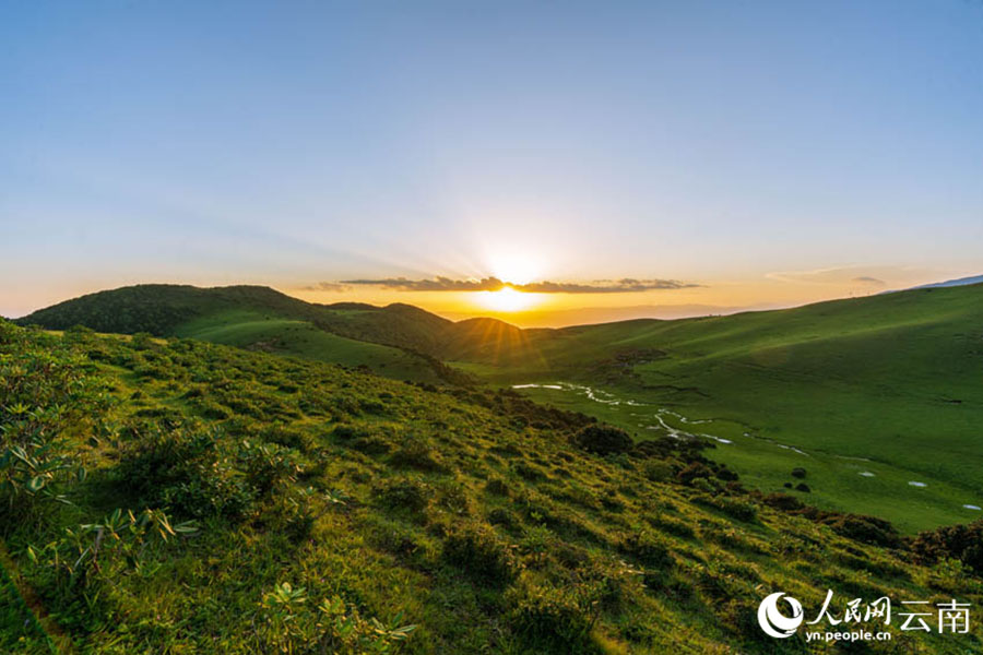 Photo shows the beautiful scenery of a sunrise at Niaodiaoshan Mountain in the Dali Bai Autonomous Prefecture, southwest China’s Yunnan Province. (Photo/Luo Xincai)