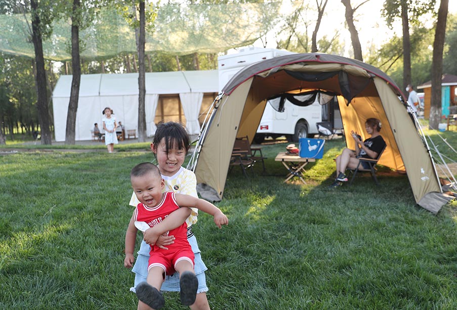 Beijing Expo Park launches its camping festival on Saturday. There are a total of 1,096 camping spots for as many as 3,300 tourists in the park. [Photo by Zou Hong/chinadaily.com.cn]