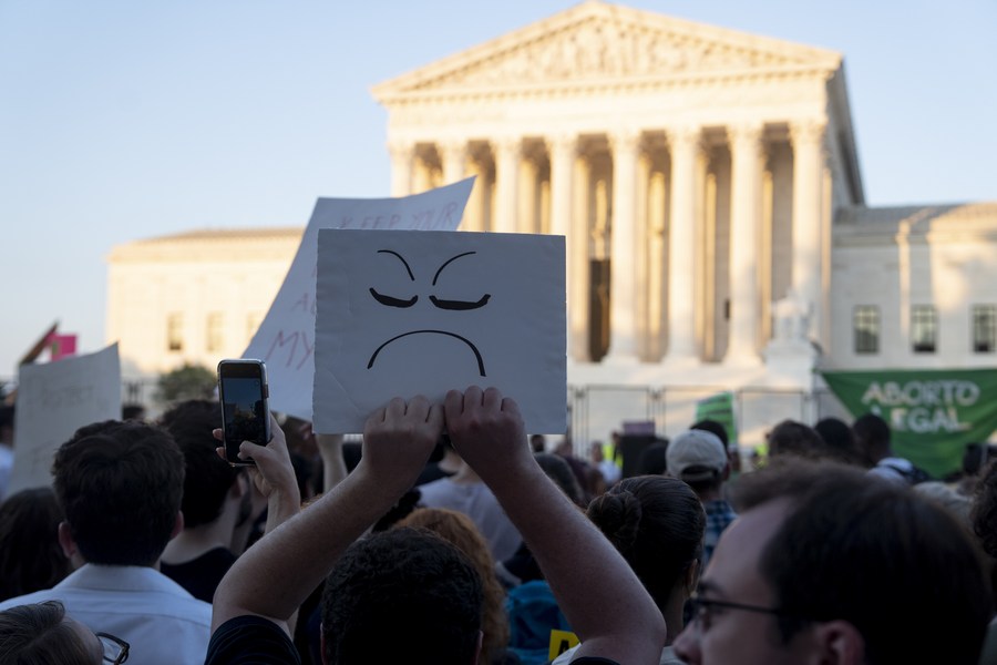 Protesters gather outside the U.S. Supreme Court in Washington, D.C., the United States, June 24, 2022. (Xinhua/Liu Jie)