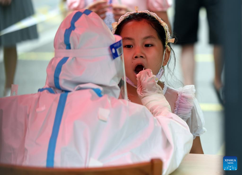 A medical worker takes a swab sample from a citizen for nucleic acid testing in Longzihu District of Bengbu City, east China's Anhui Province, July 17, 2022.